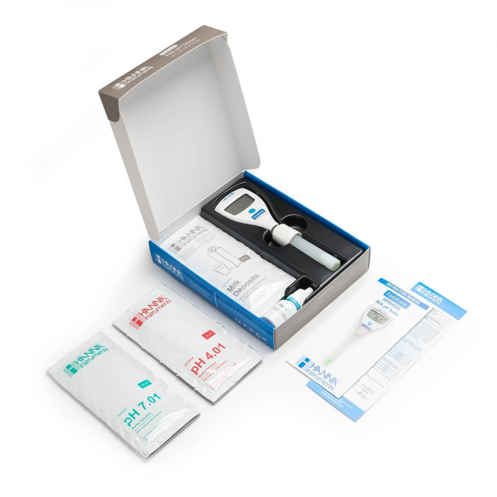 HI981034 спроектирован для упрощения процедуры тестирования pH молока в ходе переработки. Прибор предназначен для эксплуатации в условиях повышенной нагрузки на предприятиях молочной промышленности. Интегрированный датчик с открытым электродом, коническим стеклянным наконечником и корпусом из стекла оптимизирован для точного измерения pH молока на всех этапах обработки.