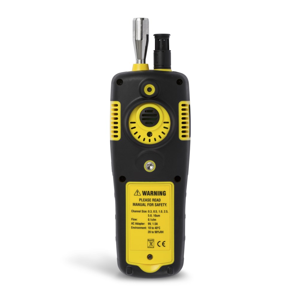 - Дополнительный цветной индикатор с автоматической звуковой сигнализацией для быстрого определения критических концентраций частиц
