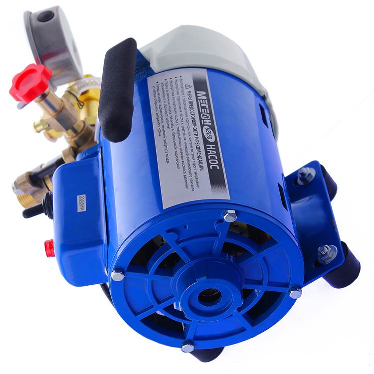 В стандартную комплектацию входит пластиковый резервуар объемом 17 литров, устойчивый к воздействию различных жидкостей. Насос оснащен регулируемым редукционным клапаном и манометром на выходе, рассчитанным на давление до 7 МПа (70 кгс/см2) с четкой шкалой для контроля давления.