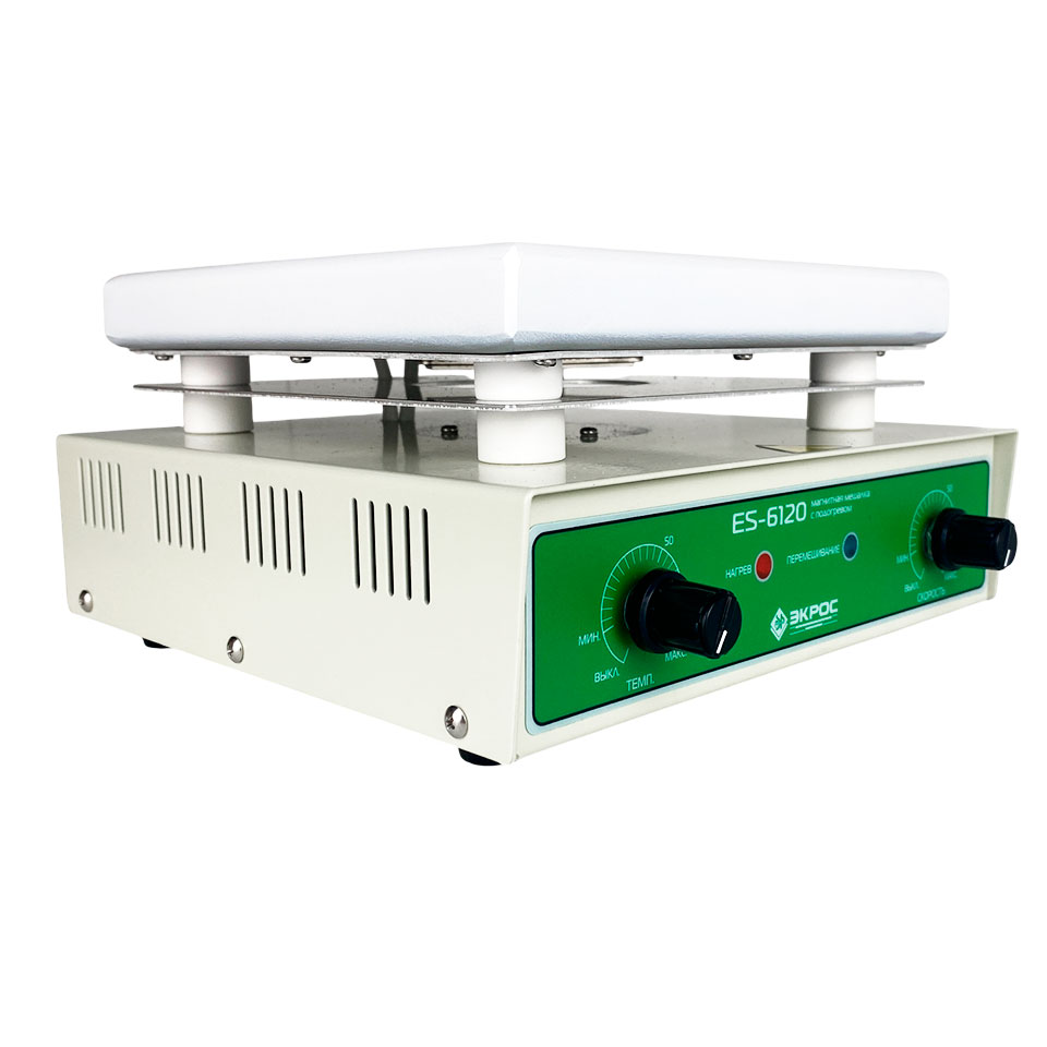 Магнитная мешалка ES-6120 с функцией подогрева предназначена для эффективного смешивания и поддержания заданной температуры содержимого лабораторной посуды с плоским дном объёмом до 2 литров.