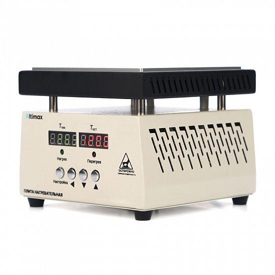 Модель Altimax HP-1-1515 представляет собой универсальную нагревательную плиту, предназначенную для обеспечения равномерного термического воздействия на электронные компоненты, а также колбы и иную лабораторную посуду. Данный прибор находит широкое применение в различных сферах, включая ремонт мобильных устройств, пайку алюминиевых конструкций и светодиодных ламп, процессы выпаривания и сушки растворов, смесей и образцов.