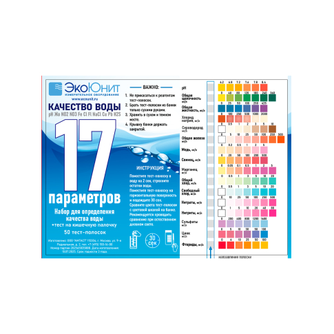 Предлагаемый набор для определения 17 параметров качества воды на 50 тестов, включая анализ на наличие кишечной палочки E.coli, является эффективным решением данной проблемы. Он позволяет провести быстрый (за 1 минуту) и точный анализ воды, что способствует своевременному принятию мер по обеспечению безопасности и качества питьевой воды.