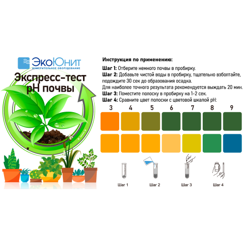 - Определение pH: Сравните окрас тестовой полоски с цветовой шкалой, прилагаемой к упаковке. Результат сравнения позволит определить pH почвы.