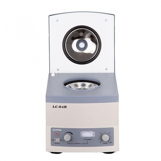 Высокоскоростная лабораторная центрифуга LC-04B оснащена механизмом плавной регулировки скорости вращения ротора в значительном диапазоне значений. Установка требуемых параметров осуществляется посредством двух механических регуляторов: ручки настройки скорости и ручки задания времени вращения. Включение питания и запуск центрифуги осуществляются одной кнопкой на центральной панели. Для визуального контроля установленной скорости на центральной панели предусмотрен циферблат. Безопасность эксплуатации обеспечивается автоматическим блокированием крышки после установки параметров и начала вращения ротора.
