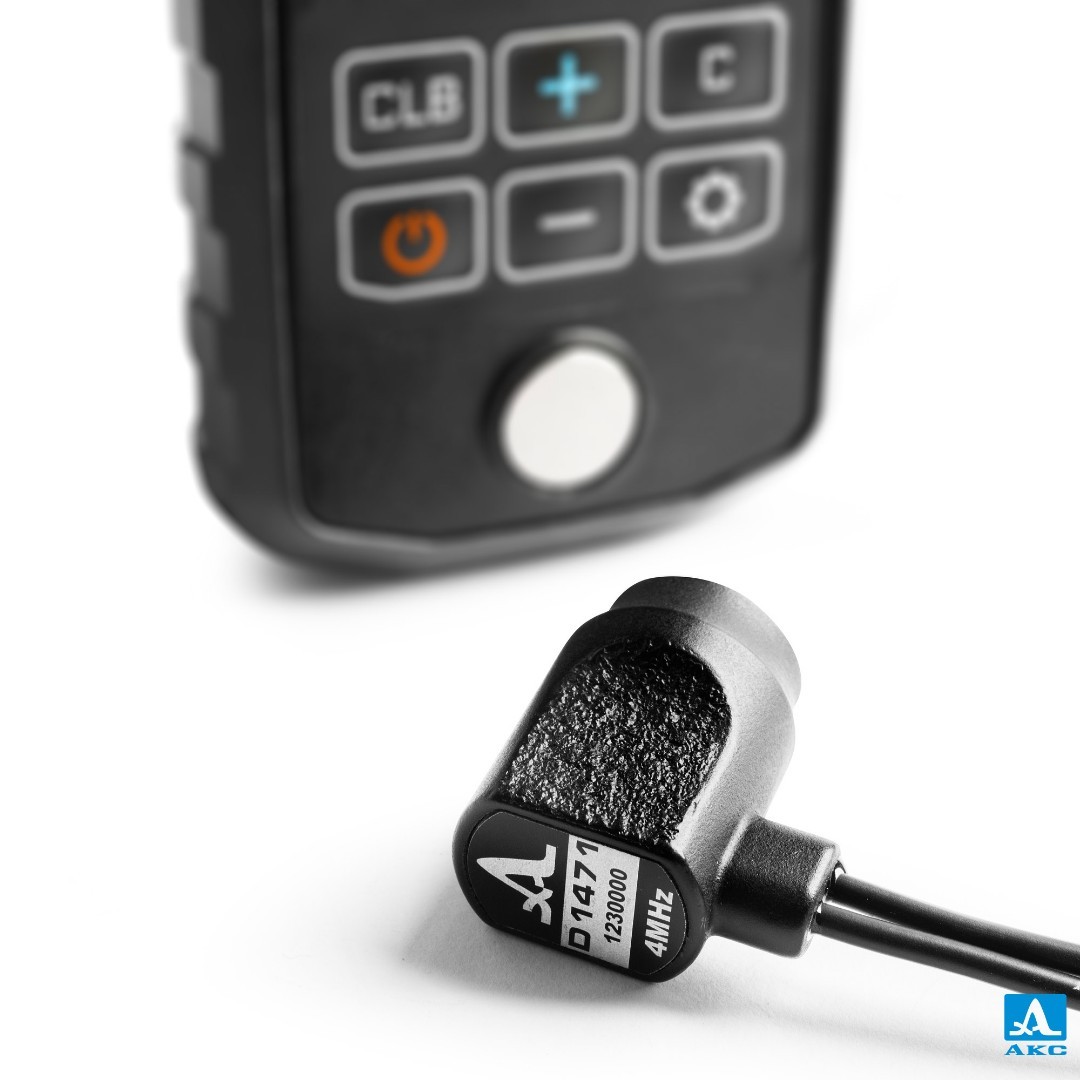 - В комплекте новый малогабаритный раздельно-совмещенный преобразователь D1471 со встроенным кабелем частотой 4 МГц для толщинометрии различных объектов из стали, в том числе труб малого диаметра