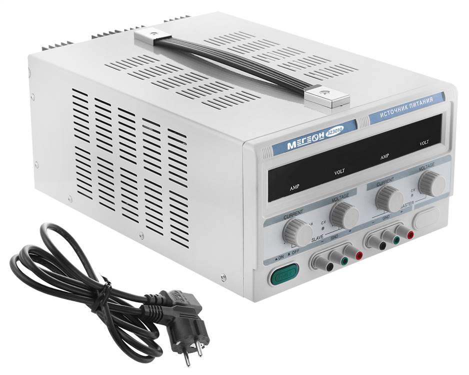 Модель МЕГЕОН 323010 представляет собой компактный, двухканальный источник питания с высокой точностью. Каждый из независимых каналов способен обеспечить напряжение в диапазоне от 0 до 30 В и силу тока нагрузки от 0 до 10 А.