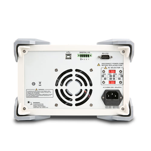 Каждый из регулируемых выходов CH1/CH2 способен обеспечить мощность 150 Вт в диапазоне напряжений от 0 до 30 В и силы тока от 0 до 5 А. Третий канал обеспечивает дискретные значения выходных параметров: силу тока величиной 3 А и набор из четырех фиксированных значений выходного напряжения: 1,8 В, 2,5 В, 3,2 В или 5,0 В.