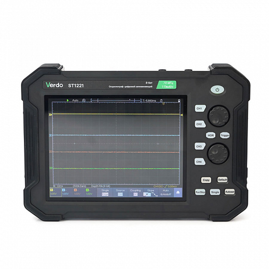 Осциллограф VERDO ST1221 представляет собой планшетный двухканальный прибор, обладающий уникальным плоским дизайном, предназначенным для использования в полевых условиях.